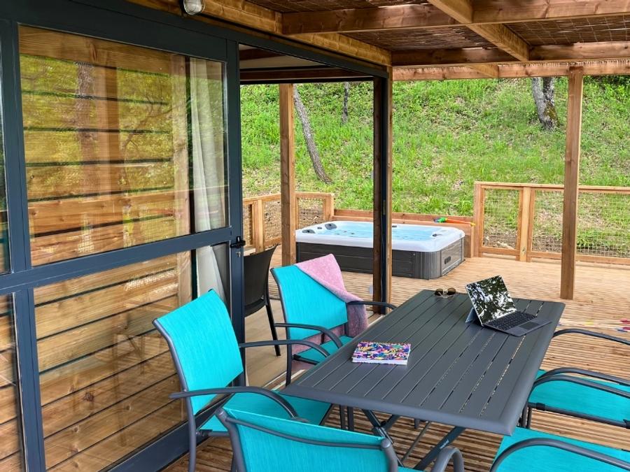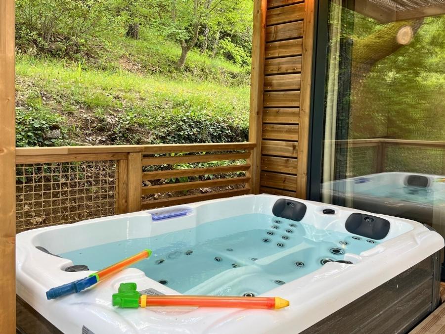 - Grand, spacieux, lumineux, ce cottage est idéal pour les grandes familles. Situé très au calme dans le camping, entouré de végétation il vous permettra d’apprécier la tranquillité tout en profitant de tous les avantages du camping… Équipé de tout le confort que vous pourriez espérer, il ne vous reste plus qu’à déposer vos affaires et profiter pleinement de cette très belle location toute neuve… Avec en prime un spa privatif sur la terrasse, pour apprécier pleinement la détente à la provençale ! A noter : Nous changeons l’eau et nettoyons les spas entre les séjours. L’eau peut être toujours en train de chauffer pour atteindre sa température maximum lorsque vous arrivez le premier jour.