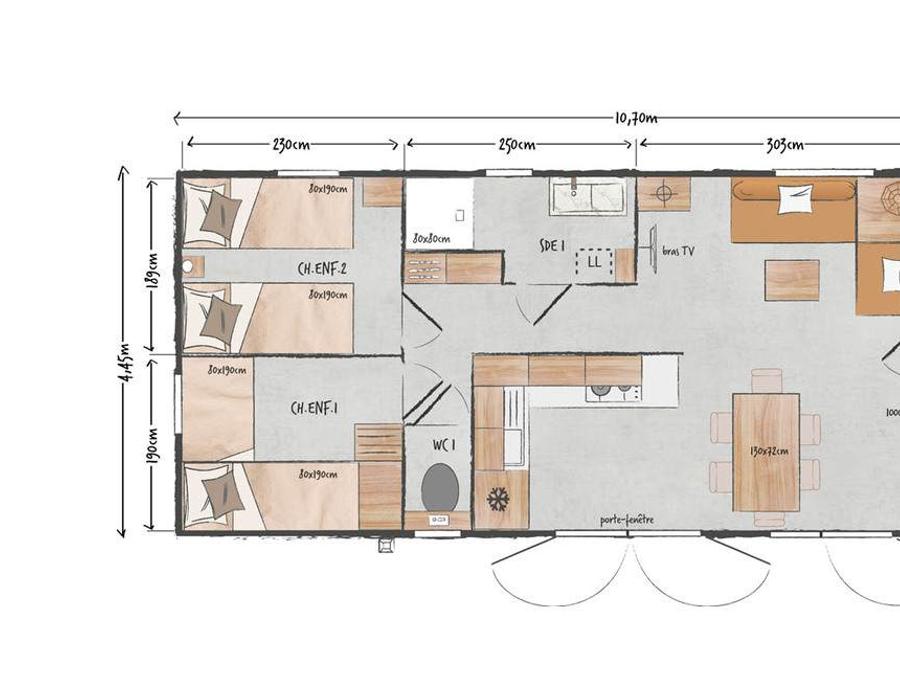 Mobilhome 8 personnes - Family Confort 4 chambres - 2 salles d'eau