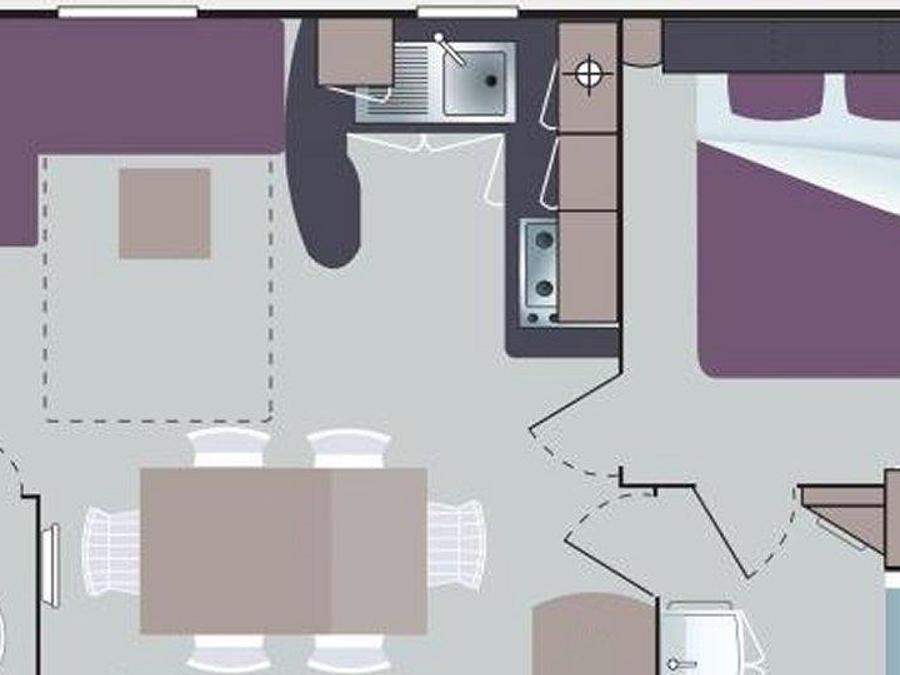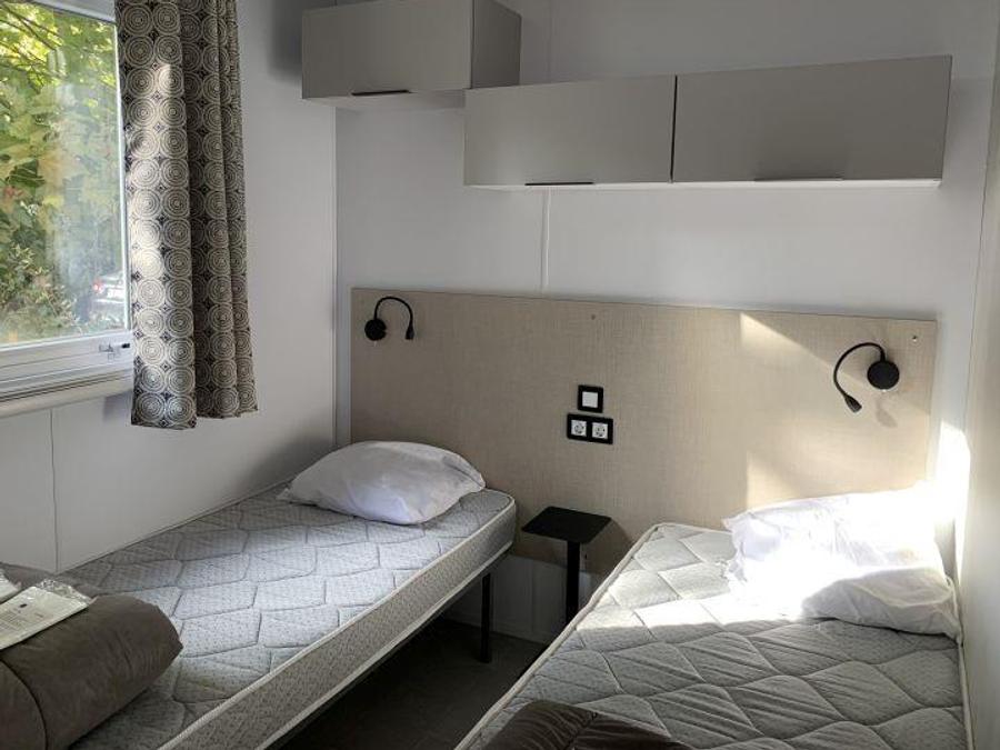 Les tailles de lits mentionnées sont données à titre indicatif. Il est possible d’avoir de légères différences de tailles selon les modèles de locatifs et leurs millésimes. La disposition des lits et la décoration peuvent également varier.
