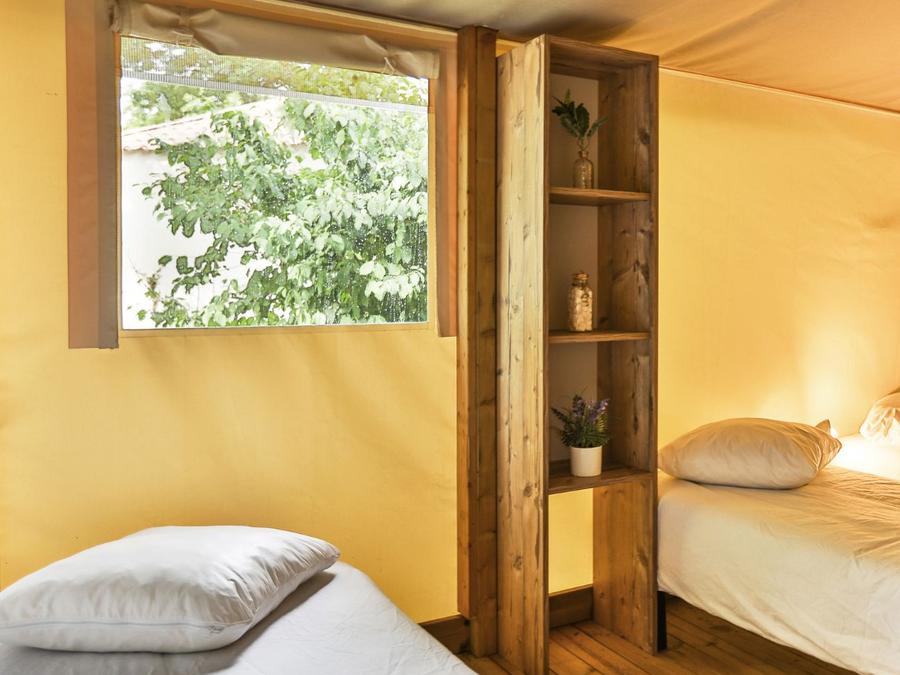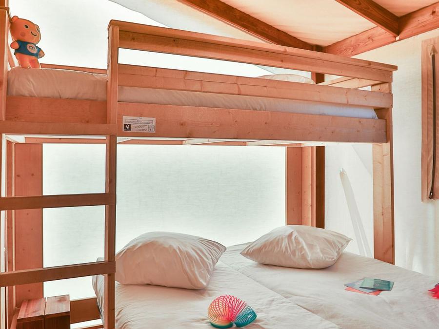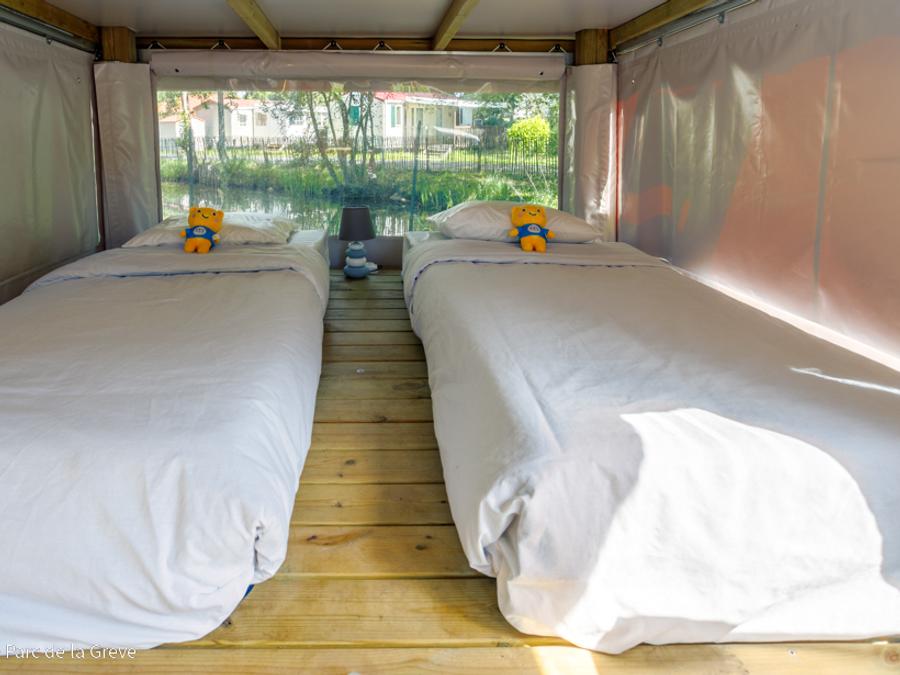 - L'écolodge Sahari est idéale pour passer des vacances glamping au camping Ushuaïa Village Le Parc de la Grève près de Saint-Gilles Croix de Vie tout en bénéficiant d'espace de vie de qualité supérieure. Les chambres spacieuses bénéficie de rangements. La grande chambre parentale est équipée d'un grand lit (160x190) et d'un couchage supplémentaire pour une personne pouvant être déplacé dans le salon au gré des besoins. La deuxième chambre est équipée de 2 lits 1 personne superposés. Dans cette tente, vous serez face à l'étang de pêche, pour une intégration très nature et profitez d'un barbecue charbon.