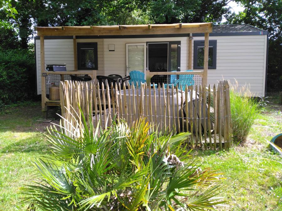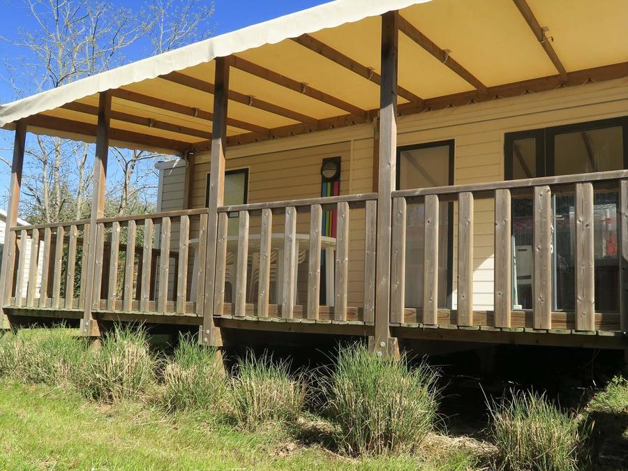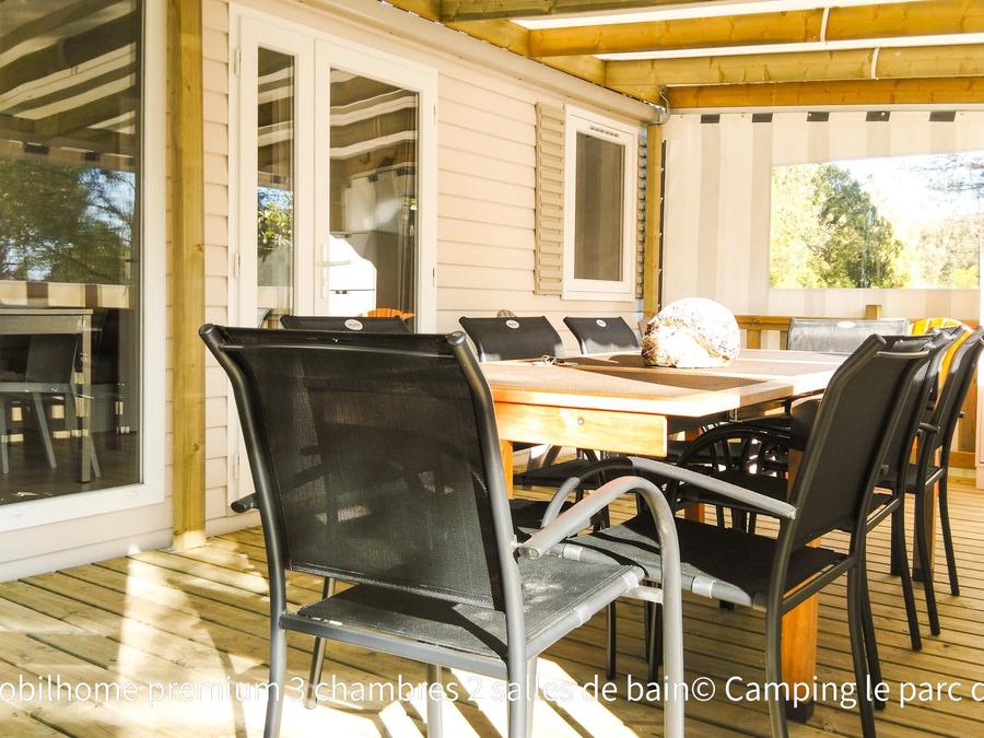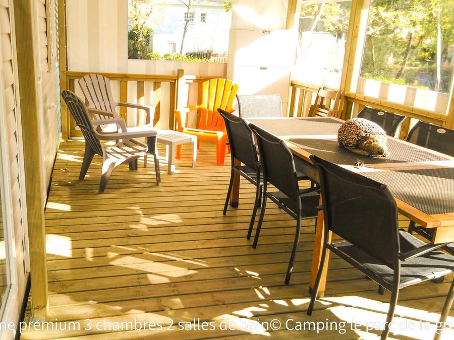 Venez profitez de notre mobilhome XL 3 chambres 2 salles de bain dont une en suite parentale sur son nouvel emplacement ! Sa très grande terrasse couverte de 18m² couverte pouvant être fermée pour prolonger vos diners d'été.
