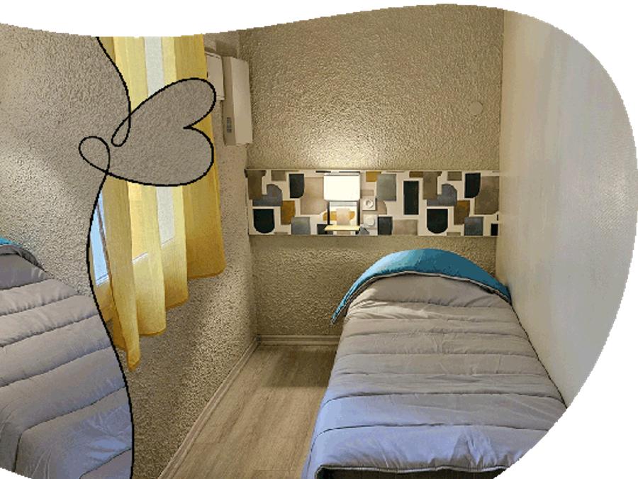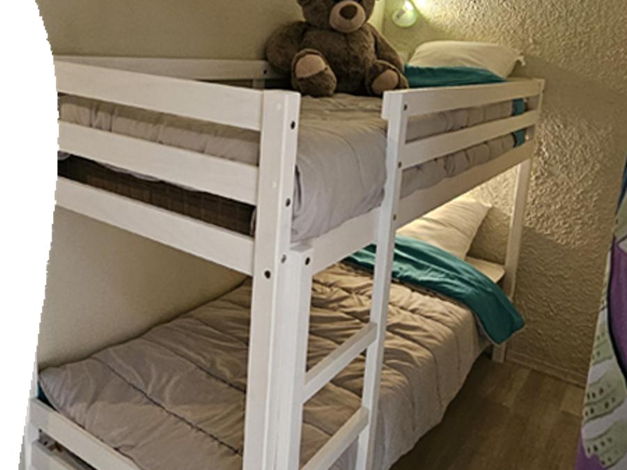 Cette location offre 3 vrais couchages dans la chambre enfant : deux lits 80×190 et un lit 80×180, idéal pour les familles avec 3 enfants.