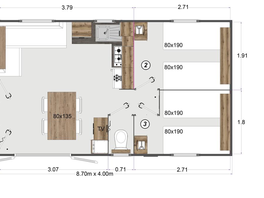 Mobilhome 6 personnes - Eden Trio - 3 chambres + TV