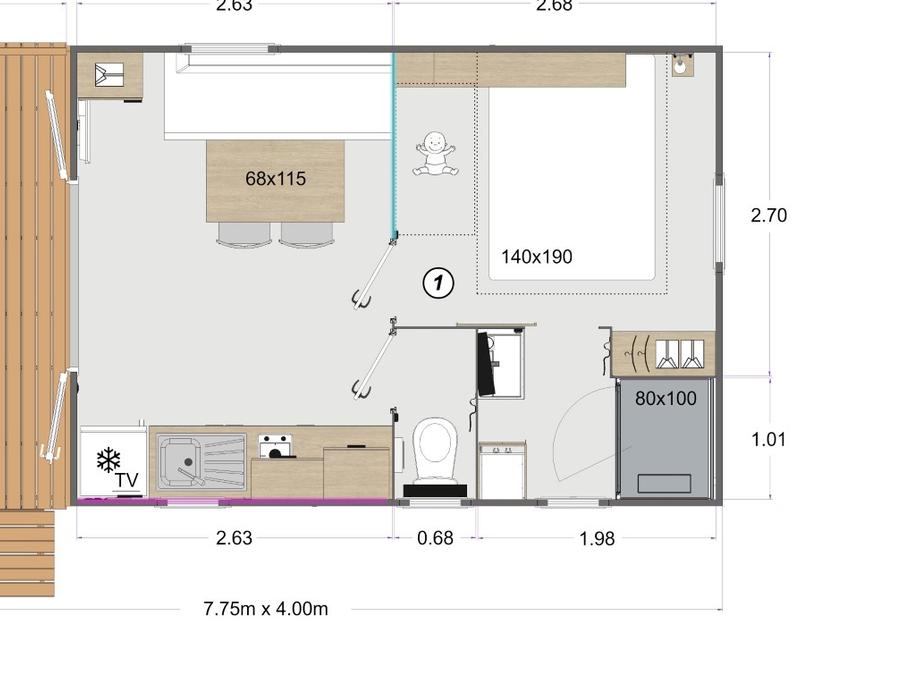 Mobilhome 4 personnes - Eden Solo - 1 chambre + TV