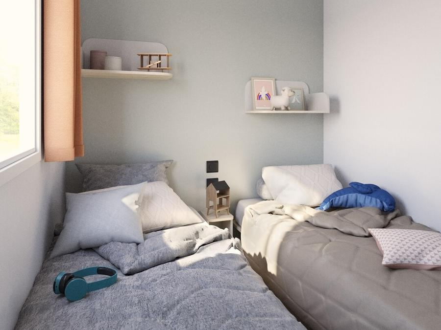 - Le mobil-home Life offre une terrasse couverte et peut accueillir confortablement 4 à 5 personnes. Le Life a été spécialement conçu pour répondre aux besoins des personnes à mobilité réduite ou des familles avec des enfants en poussette.