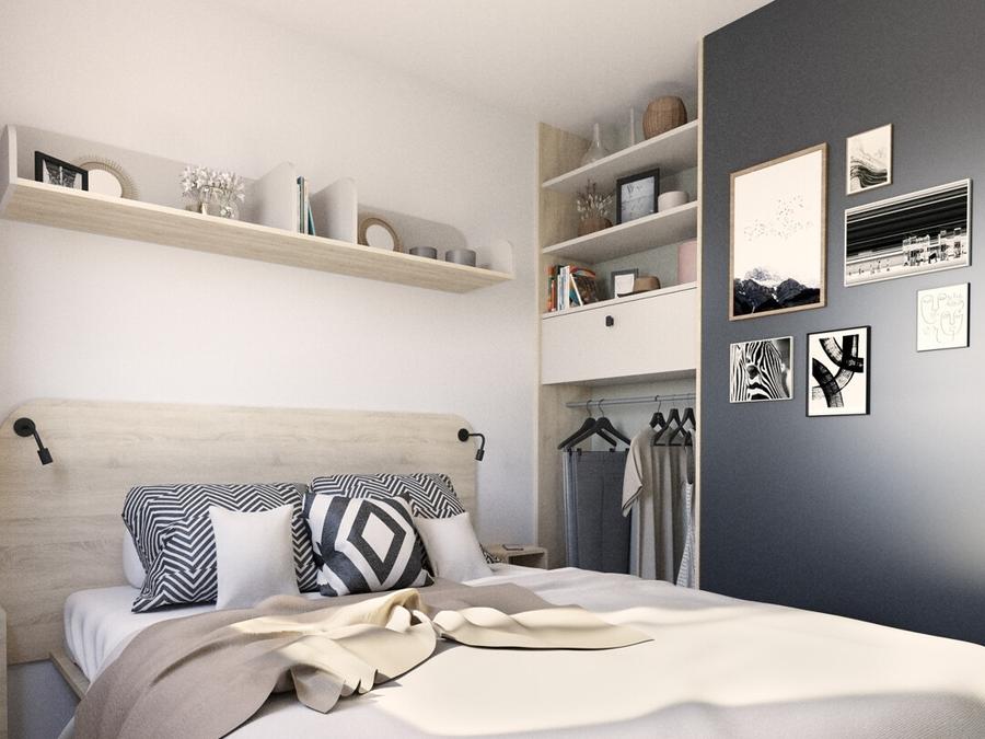 La suite parentale dispose d'un lit de 160x200 avec une grande penderie. Il est également possible d'ajouter un lit bébé.
