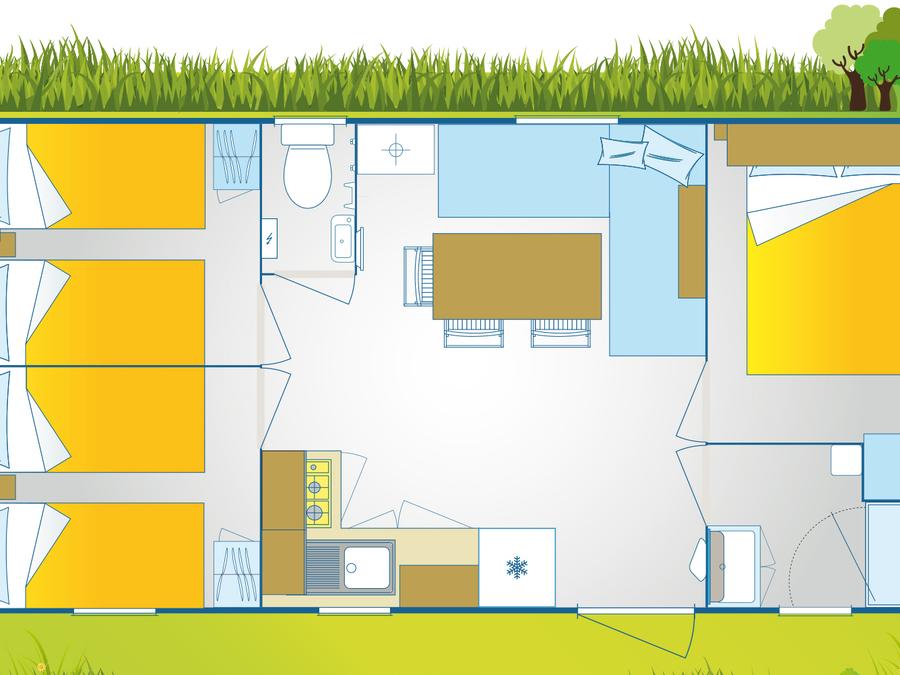 Mobilhome 6 personnes - Comfort | 3 Chambres | Capacité 6 personnes | Terrasse semi couverte | 1 Salle de bain | Climatisation