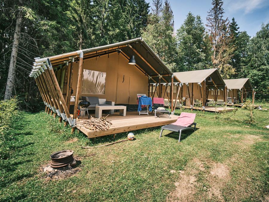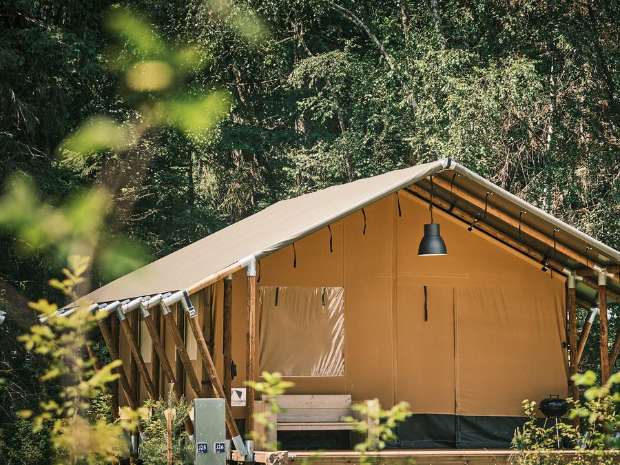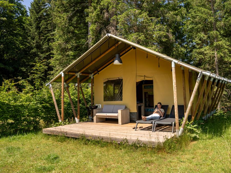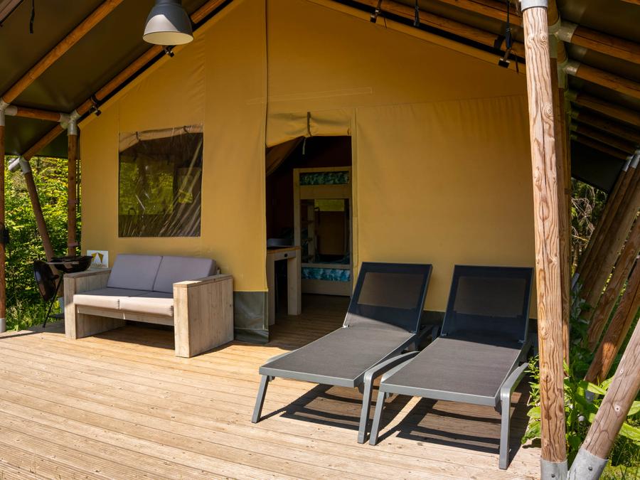 Tente en toile et en bois 5 personnes - Tente safari 37m²