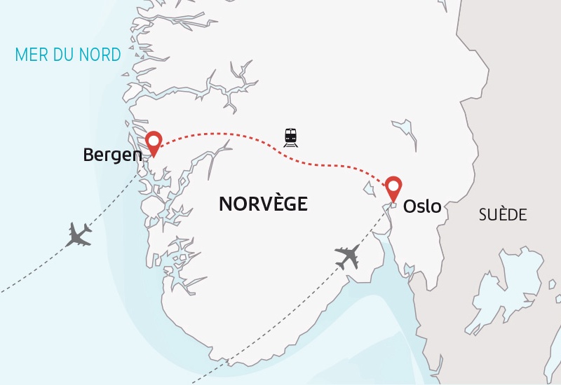 Sur la compagnie SAS, vols réguliers PARIS/BERGEN (avec escale) à l'aller et OSLO/PARIS au retour.