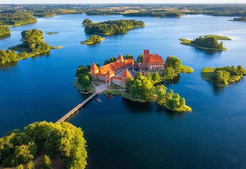 Visite guidée panoramique de Vilnius, capitale lituanienne mais ville polonaise jusqu'en 1945 : la cathédrale, la Porte de l'Aube et la colline Gediminas. Déjeuner. Excursion à Trakaï, petit village typique jadis capitale du pays. Visite de son château datant du Moyen Âge construit sur une île du lac de Galve. Retour à Vilnius en fin d'après-midi. Dîner logement.