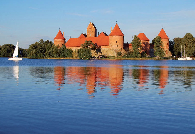 visite guidée de Vilnius, la capitale lituanienne, ville polonaise jusqu'en 1945 : la cathédrale, l'ancienne université (entrée incluse), l'église Saint-Jean et la colline Gediminas... Déjeuner. Excursion à Trakai, typique village, jadis capitale du pays. Visite de son château médiéval, dans un site magnifique au coeur d'un lac. Dîner logement.