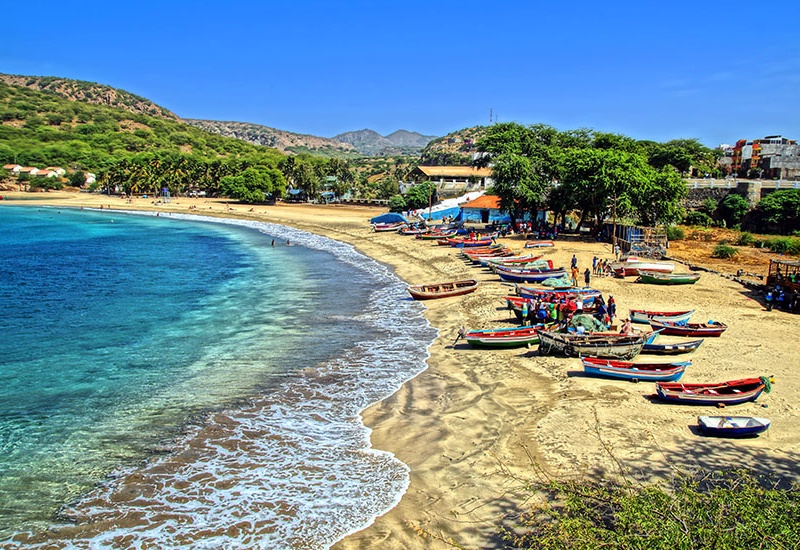 Balade panoramique dans la capitale capverdienne, Praia : le marché aux fruits, l'Assemblée nationale, le palais de la République... Visite du ravissant petit musée ethnographique. Puis visite de Cidade Velha, classée au patrimoine historique de l'UNESCO, première ville coloniale construite en 1587 par les Européens sous les tropiques pour servir d'escale maritime à la colonisation portugaise et carrefour de la traite négrière : importants vestiges, une forteresse royale, deux églises, la place du Pilori avec sa colonne de marbre de style manuélin... Déjeuner en bord de mer. Cocktail local et démonstration de batuque, expression musicale capverdienne exécutée par des groupes de femmes qui marquent le rythme en percutant des étoffes attachées aux genoux dans un rythme frénétique et une ambiance mystique. Fin d'après-midi libre. Dîner logement.