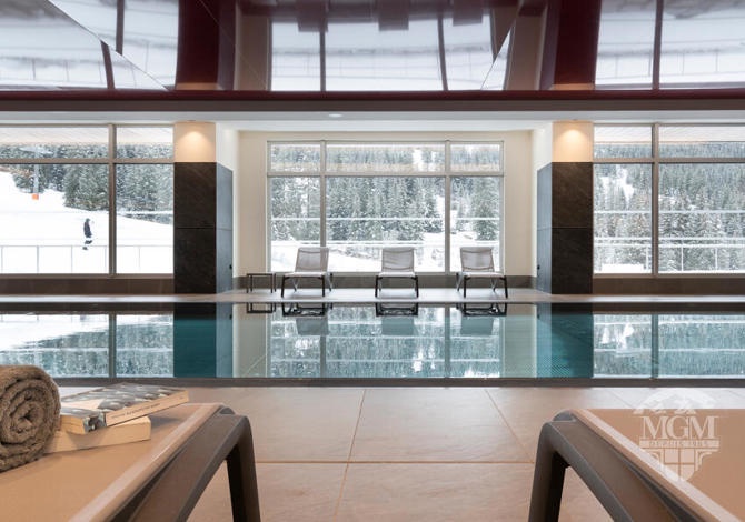 Résidence : D'architecture moderne, l'établissement offre une atmosphère de standing et des chambres à la décoration épurée. Services inclus : espace bien-être avec piscine intérieure, sauna et hammam, casiers à skis avec sèche-chaussures et bagagerie. En supplément : buanderie, petit-déjeuner et accueil VIP.