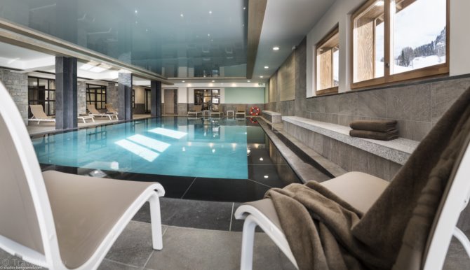 Résidence : Un cadre minéral et épuré, mêlant bois et inox. Appartements de standing spacieux allant de 35m² à 120m² équipés haut de gamme, à la fois élégant et authentique, proposant chacun un balcon ou une terrasse avec mobiliers extérieurs. Sur place à disposition : piscine chauffée et couverte, espace bien-être avec sauna, un hammam ainsi qu'un bain à remous, espace forme et espace soin.
