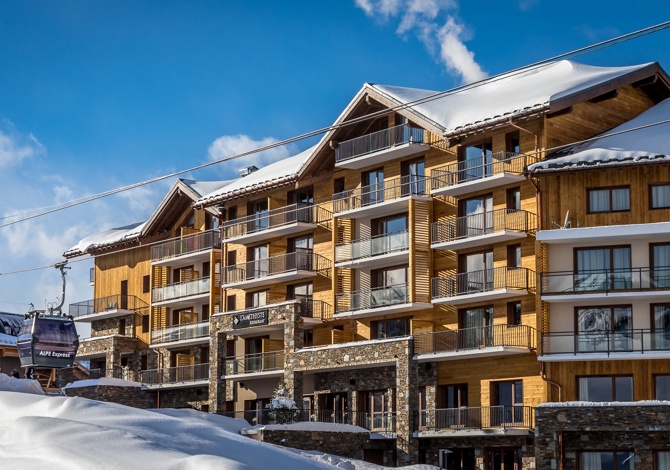 L'hôtel arbore une architecture montagnarde mêlant bois et pierre et offre une luminosité maximale. Ses 46 chambres, décorées avec élégance dans un style luxueux et confortable, sont toutes dotées d'un balcon avec une vue imprenable sur les montagnes. Sur place, profitez d'un espace bien-être de 800 m², de l'accès Wi-Fi gratuit, et d'un service de navette. Un bar ainsi qu'un restaurant bistronomique sont également disponibles en supplément.
