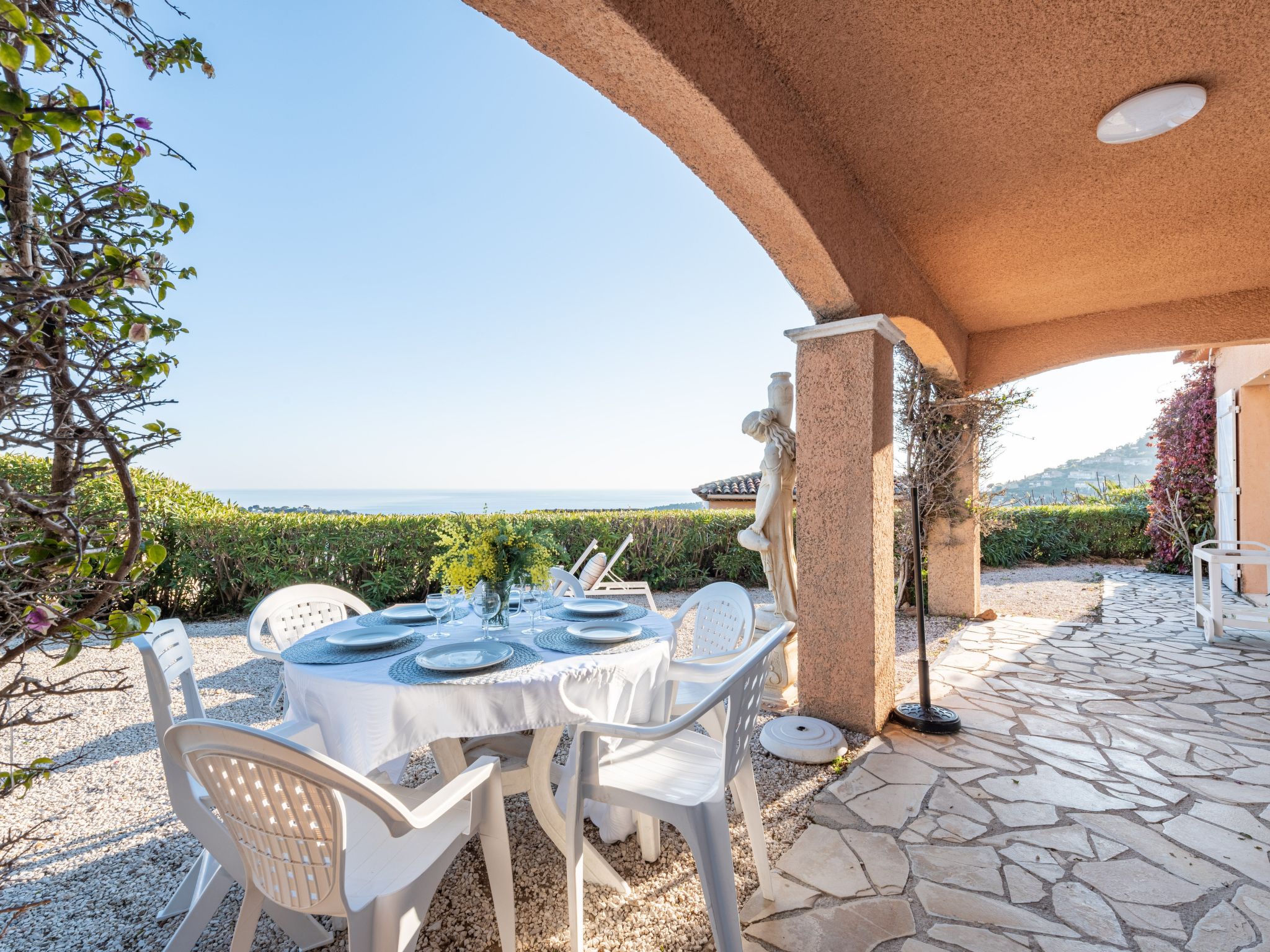 Maison individuelle accueillante, confortable "Yalou", de 2 étages. Dans la localité, à 1.5 km du centre de Cavalaire-sur-Mer, en bordure de la localité, à 19 km du centre de Saint-Tropez, situation tranquille, ensoleillée dans un quartier résidentiel, à 2 km de la mer, à 2 km de la plage. A usage privé: terrain 600 m2, jardin entretenu, piscine rectangulaire (8 x 4 m, profondeur 120 - 170 cm, disponibilité saisonnière: 02.Mai. - 17.Oct.) avec alarme de sécurité. Place de parking sur le terrain. Magasins 1.5 km, supermarché 1.8 km, restaurant 1.5 km, boulangerie 1.8 km, arrêt de bus "Halte routière" 1.4 km, parc "Aqualand" 24 km, centre de plongée 2.4 km. Port plaisance 2.4 km, ecole de voile 1.7 km, tennis 3.4 km, golf miniature 14 km. Attractions à proximité: Azur Park, Paint-ball 14 km, Azur Park, Paint-ball 16 km, St Tropez 19 km, Ste-Maxime 22 km. Région de randonnées: Sentier du Fenouillet 3.4 km, Sentier du Littoral 2 km, Toulon 61 km. La remise des clés a lieu à l’agence Interhome de Cavalaire.
