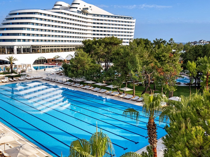 Bienvenue à l’Hôtel Titanic De Luxe Lara 5* ! Situé sur la Riviera turque, à proximité d’Antalya, découvrez une adresse familiale et élégante. Son architecture inspirée du célèbre Titanic vous plonge immédiatement dans l’univers du film mythique. L’endroit est idéal pour un séjour au cœur de paysages idylliques, à seulement quelques pas de la mer Méditerranée et de ses eaux turquoise. Les chambres, décorées dans un style moderne, offrent un confort exceptionnel. Goûtez à une cuisine locale et internationale haut de gamme, sublimée par le savoir-faire de chefs renommés pour un plaisir culinaire garanti. Pour un divertissement de qualité, le complexe dispose d’un immense parc aquatique, d’un club pour enfants, d’une salle de jeux ainsi que d’une plage privée de 350 mètres, alliant amusement et détente. Dans ce séjour ensoleillé, où tout a été pensé pour vous offrir des souvenirs inoubliables, laissez-vous séduire par la Turquie et la côte d’Antalya sous un angle aussi inédit que paradisiaque.