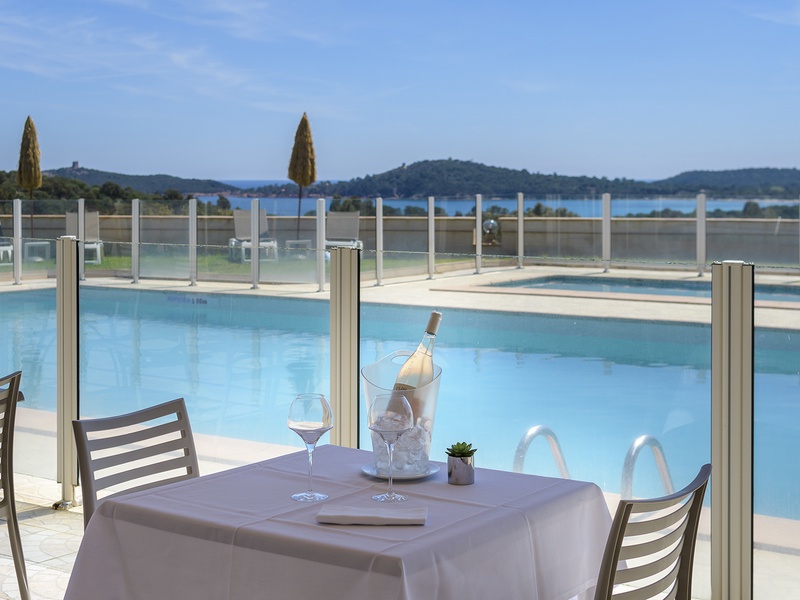 Bar climatisé avec terrasse panoramique au bord de la piscine à débordement (ouverts toute la saison) proposant du snacking et où vous pourrez également prendre vos petits déjeuners (18€*/adulte et 10€*/enfant de 3 à moins de 12 ans, en règlement sur place).
