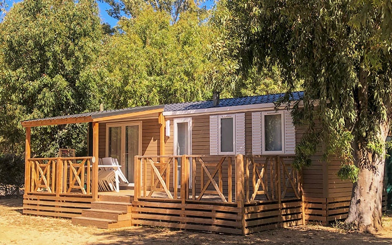 Le camping propose des mobil-homes modernes, fonctionnels et climatisés, chacun doté d'une terrasse couverte et aménagée, d'une salle de douche avec WC séparés, et d'une cuisine entièrement équipée (4 feux gaz ou électrique, réfrigérateur, congélateur, cafetière, micro-ondes), complétée par une large vaisselle et un petit séjour avec télévision.
