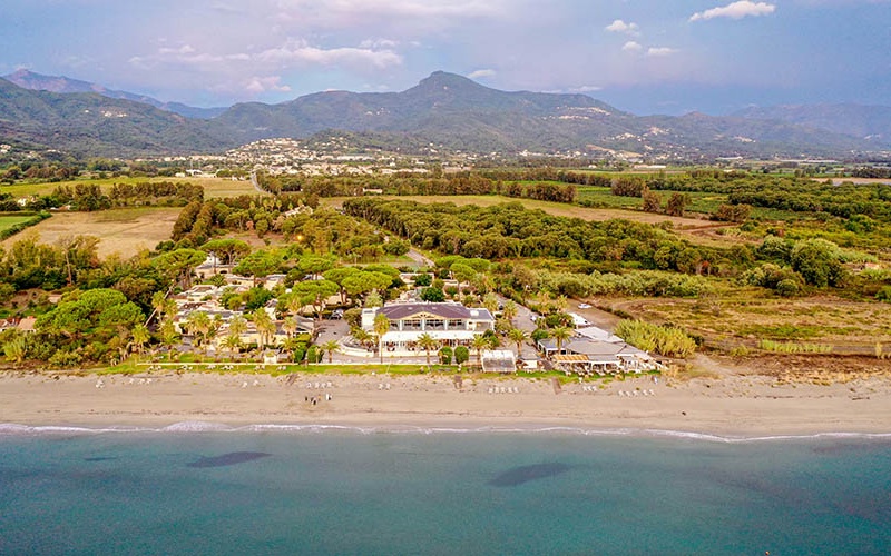 À 30 kilomètres au sud de Bastia, et à 20 minute de l'aéroport en voiture, dans un parc fleuri de 3 hectares, l'hôtel s'étend le long d’une plage, au pied de la célèbre région boisée de la Castagniccia et des eaux d'Orezza, face aux îles toscanes.
