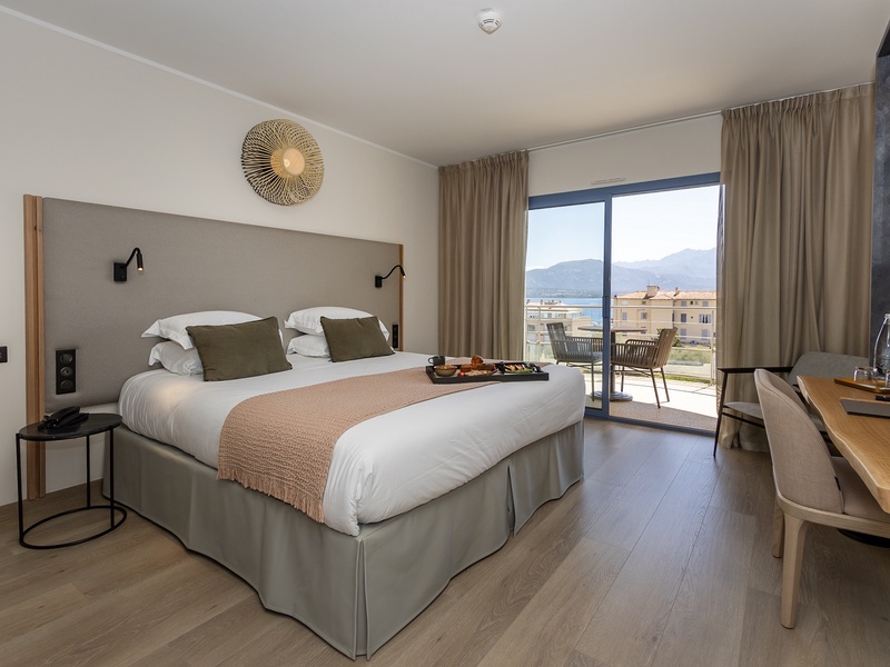 Des chambres avec vue mer partielle : chambre classique (27 m²), chambre rez-de-jardin (30 m²), chambre supérieures (30 m²), Junior suite citadelle (40 m²).