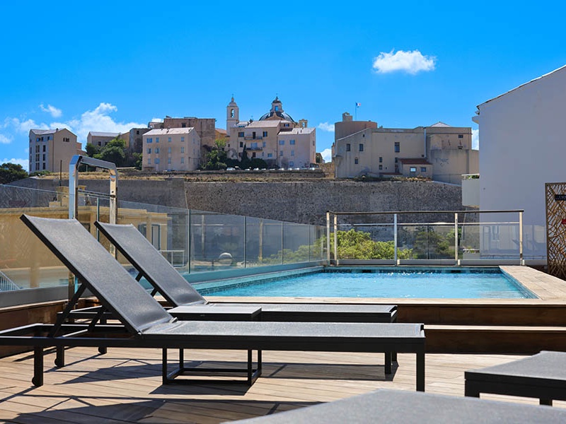 La piscine extérieure chauffée à 28°C, située au 1er étage, offre une vue imprenable sur la mer et la citadelle, idéale pour nager quelques longueurs ou se détendre au soleil sur un chaise longue. La terrasse aménagée permet de profiter pleinement d’un moment de lecture ou d'un rafraîchissement à l'ombre d'un parasol, dans une atmosphère de totale sérénité. Pour les séjours professionnels, une salle de séminaire modulable accueille jusqu’à 100 personnes, avec tout le matériel nécessaire et la possibilité de profiter de la piscine pour des moments conviviaux. Aux alentours, Calvi et ses environs proposent de nombreuses activités sportives et ludiques, permettant de varier les plaisirs et de profiter pleinement des richesses de la Balagne.