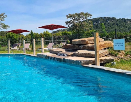 piscine bio-minérale stérilisée avec pataugeoire et cascade