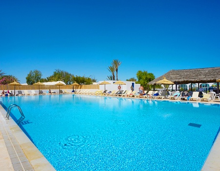 - Piscine avec chaises longues
